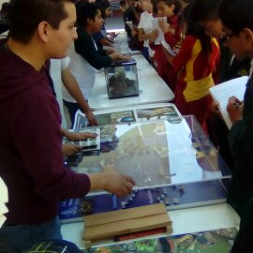 Alumnos del Colegio asisten a la feria para adquirir y reafirmar sus conocimientos en la material.
