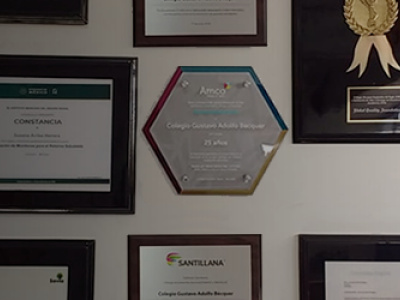 Amco extiende una felicitación y entrega un reconocimiento por 25 años de trayectoria que honra el compromiso en la educación al ser un gran ejemplo de calidad y vanguardia educativa. Educando para la vida, formando niños felices y con un futuro brillante.